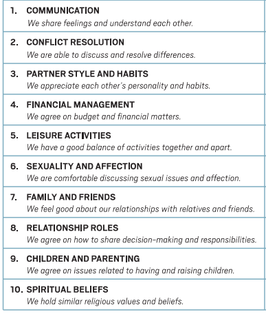 Prepare/Enrich Workbook with worksheets and activities to complete as a couple for a better understanding of each other and the relationship